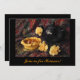 Customisez facilement le texte sur cette belle invitation Brinner. Quel plaisir de servir le petit-déjeuner pour le dîner. Cette invitation présente une tarte à l'abricot orange maison dans une délicieuse coquille de pâtisserie servie sur une plaque en verre accompagnée d'une théière bleu marine et de trois fleurs d'oeillet jaune or. Toutes sont posées sur un beau tissu de cachemire dans les tons rouge, vert, bleu et violet. La photographie d'art a été améliorée pour produire le sentiment d'une vieille peinture de la vie morte.