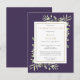 Une carte postale d'invitation à la célébration de la vie personnalisée et élégante, avec un feuillage de verdure botanique à l'aquarelle sur fond violet. Conçue par Thisisnotme©