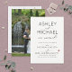 Cette belle et moderne invitation de célébration de mariage "Just Married" avec calligraphie typographique présente un script de calligraphie noir et blanc et un design d'invitation avec une police sans serif en majuscules modernes sur le devant, et une photo couleur à orientation verticale de votre dos de mariage. Merci beaucoup de soutenir notre petite entreprise, nous l'apprécions vraiment !