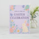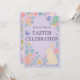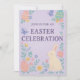 Célébrez Pâques avec style grâce à cette invitation charmante recto-verso. Le devant présente des tons pastel avec des lapins, des œufs décorés, des papillons et des fleurs printanières, laissant de l'espace pour des détails personnalisables. Le dos décoratif complète le design avec une bordure ludique d'œufs de Pâques, de fleurs et de lapins. Parfait pour les brunchs de Pâques, les réunions de famille et les célébrations printanières.