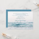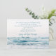 Invitation à une cérémonie de renouvellement de vœux pour une célébration au bord de la mer. Les cartes simples avec de l'eau de mer ont deux emplacements à personnaliser avec du texte. Toute la formulation de l'invitation est ajoutée dans un paragraphe avec les noms du couple en dessous. Image de vagues bleues et blanches qui roulent au rivage avec tout le texte en haut, au-dessus de l'horizon. Le verso est d'un bleu foncé uni pour assortissement. Améliorez le papier comme vous le souhaitez.