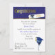 Élégante invitation à la remise des diplômes, faite d'un arrière - plan blanc et de dessins d'un ballon bleu et or festif, avec un casquette en mortier, dans le coin inférieur droit de l'invitation. Un joli motif de damas floral bleu, de l'autre côté du haut, a la lecture graphique en couleur or de texte graphique Congratulations et un parchemin de diplôme a un texte personnalisé en couleur or lire l'année. Personnalisez l'année et le reste du texte de l'invitation pour répondre aux besoins de votre parti.