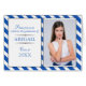 Cette invitation à la graduation rayée bleue et blanche est à la mode et pleine de vie ! Carte idéale pour invitation votre famille et vos amis pour célébrer une fête de remise de diplômes. Customisez facilement avec la photo, le nom et l'année de la classe d'obtention du diplôme. Si vous voulez une couleur différente pour correspondre à l'école, faites-le-moi savoir ! Je serai heureux de changer vos couleurs !