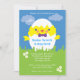 Cette invitation mignonne et ludique est idéale pour rassembler famille et amis pour célébrer le dimanche de Pâques. Il présente un chic mignon qui sort d'un oeuf blanc avec une cravate arc et des joues roses. L'herbe verte et le ciel bleu donnent à cette carte un air extérieur idéal pour la chasse aux oeufs.