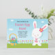 Cute invitation à la chasse aux oeufs de Pâques. Cette belle invitation de vacances de printemps comporte un panier de Pâques rempli d'oeufs colorés de Pâques et une mignonne fille Bunny de Pâques. Quelques éléments ZenWareDesgins@MyGrafico