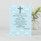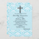 Commencez votre fête avec cette élégante et sainteté invitation à cette Sainte Communion spéciale des garçons. Il y a un damas bleu sur le dessus et le bas du invitation. En haut au centre, il y a une croix damassée noire et blanche. Consultez les nombreux autres articles de cette ligne tels que les étiquettes, l'affranchissement, les notes de remerciement, et plus encore.