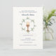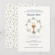 Élégante invitation à la première communion avec une gracieuse couronne florale de feuilles et de branches entourant le pain et les symboles de la calice. Le texte modifiable vous permet de personnaliser chaque détail, avec un motif botanique assorti au verso pour un look raffiné et cohésif.
