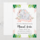 Célébrez l'arrivée de votre petit avec ces invitations modernes à la douche bébé à l'éléphant de la jungle. L'élégant design présente une illustration sophistiquée d'éléphant, parfaite pour un baby shower chic et élégant.