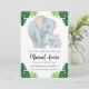 Célébrez l'arrivée de votre petit avec ces invitations modernes à la douche bébé à l'éléphant de la jungle. L'élégant design présente une illustration sophistiquée d'éléphant, parfaite pour un baby shower chic et élégant.