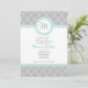 Cette invitation présente un arrière - plan en forme de carré gris clair avec des détails bleus autour du monogramme de l'honoré. Le motif en feuille de carrelage offre une invitation à la fois classe et moderne. Idéal pour les douches nuptiales, les wedding showers, les mariages, les fiançailles, les fêtes d'anniversaire, etc. Versatile et classe.