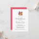 Ces invitations douces simples nuptiales ont du charme à épargner, avec un script de calligraphie élégant et une illustration de papillon aquarelle en rouge doux et en verge d'or. Les détails de votre événement sont affichés dans des styles de script gris charbon et de typographie de bloc. La carte revient au rouge de pastèque solide.