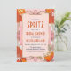 Célébrez votre journée spéciale avec une touche italienne ! Cet élégant Aperol Spritz Bridal Shower Invitations apporte l'esprit vibrant de ce cocktail classique à vos festivités pré-mariages. Avec un beau mélange de teintes orangées et d'éléments design sophistiqués, ces invitations sont parfaites pour donner le ton à un rassemblement chic et animé. Vos invités seront enchantés par l'élégante attention portée aux détails, faisant de votre douche nuptiale un événement inoubliable. Customisez avec les détails de votre événement, et laissez la célébration commencer!
