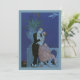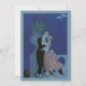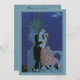 Facile à customiser l'écart de la douche nuptiale, ajoutez simplement vos informations! Ou changez le texte pour créer une invitation ou un faire-part unique et personnalisé pour tout événement ou occasion ! Si vous voulez changer la couleur de l'arrière - plan ou le style de police, cliquez simplement sur le bouton "personnaliser" pour accéder à tous les outils de conception. Beaucoup de polices à choisir ! Illustration vintage image art déco d'amour et de romance avec un homme et une femme vêtus d'une tenue formelle danse dans la salle de bal au clair de lune ; elle est dans une robe de mariée élégante ressemblant à une fleur avec des pétales et il est dans son meilleur tuxedo. Le couple est debout sur un balcon surplombant l'océan avec un grand plante dans un vase et deux inséparables volant au-dessus. La mariée mariée et mariée et leur première danse, amants à minuit sur le point de s'embrasser. Oui par l'artiste George Barbier, 1921.