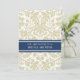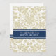 Invitations de douches nuptiales dans l'élégant champagne clair tan brun, bleu marine foncé et blanc classique vintage motif damas floral, chic et féminin, personnalisable avec vos détails de douche. Également disponible en cartes de remerciement et invitations pour la fête de mariage.