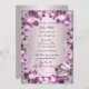 Jolies fleurs violettes sur un arrière - plan violet. Assurez-vous de donner le ton à votre élégante douche nuptiale en envoyant ces invitations enchanteresses à la douche nuptiale. Cette belle carte d'invitation à la douche est prête à être personnalisée. Personnalisez la carte en changeant le texte dans les champs avant et arrière. Vous pouvez modifier le style de police, la taille et la couleur, ainsi que le type et le style de papier.