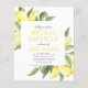 Budget Personnalisez Lemon Elégant et moderne Aquarelle Printemps été Style Bridal Shower Invitation sur arrière - plan blanc avec votre message et détails. Cette invitation chic et élégante inclut la verdure citronnelle citronnée au citron avec une typographie de script mignonne et élégante pour la célébration spéciale Mariée à être.