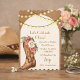invitation à la douche nuptiale à fleurs rose et marron cowboy avec lumières à cordes.