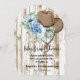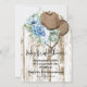 carte d'invitation à la douche nuptiale cowgirl au design floral bleu et aux accents marron.