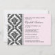 Commencez votre évènement avec notre invitation à la douche nuptiale moderne et branchée, composée d’un groupe damassé noir et blanc avec un arrière - plan damassé rose. customisez simplement notre invitation avec vos informations mariages et vous êtes tous prêts à partir. Disponible dans notre boutique www.celebrateitinvites.com dans d'autres thèmes de couleurs