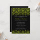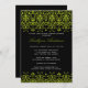 Commencez votre événement directement avec notre invitation à la douche nuptiale avec un magnifique damas vert sur un riche arrière - plan noir. Combinaison tendance de couleur verte et noire. Customisez simplement notre invitation avec vos informations de wedding shower et vous êtes tous prêts à partir. Disponible dans d'autres combinaisons de couleurs à l'adresse www.celebrateitinvites.com
