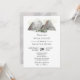 Invitation à la douche nuptiale avec sa chaîne de montagnes d'aquarelle sereine bordée d'épinettes. Des invitations adaptées à la personne qui aime le plein air.
