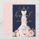 Annoncez votre événement de douches nuptiales avec notre invitation à la mariée pour les futurs mariés dans notre rose de jardin fleuri élégant, élégant et branché. Le design présente notre robe de mariage rose pâle et blanche, chic, élégante et moderne peinte à la main, avec un jardin botanique de roses et de fleurs en fleurs. La robe florale est accrochée à un cintre orné de style vintage imitant la robe dorée. Les détails de dentelles de fleurs douces et les emblèmes étincelants de la robe mariage confèrent à l'ensemble un look magnifique, sophistiqué et luxueux. Une belle écriture de style manuscrit typographie "Bridal" en faux or. Le bleu marine, le rose roux et la palette de couleurs faux or créent un style chic et vintage branché, décliné en noir et blanc. Le revers de la page présente un arrière - plan rose pâle et minimaliste avec un motif de coeur doré qui complète magnifiquement les oeuvres d'art avant. Toutes les illustrations contenues dans cette élégante invitation à la douche nuptiale en robe florale mariage sont des oeuvres d'art originales dessinées à la main par Moodthology. Vous pouvez customiser la taille du texte, la couleur du texte, la police et la mise en page de votre choix de conception personnelle.