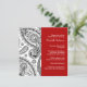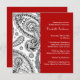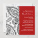 Commencez votre évènement avec notre invitation à la douche nuptiale moderne et branchée, avec un imprimé en cachemire noir et blanc sur un arrière - plan carré rouge. customisez simplement notre invitation avec vos informations mariages et vous êtes tous prêts à partir. Disponible dans notre boutique www.celebrateitinvites.com dans d'autres thèmes de couleurs