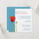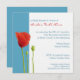 TOUS LES PRODUITS SONT ENTIÈREMENT PERSONNALISABLES. Dessin original en crayon de couleur d'une fleur de Pavot Rouge contre un arrière - plan bleu aqua, un thème lumineux et agréable pour un mariage, une carte de fête ou d'occasion spéciale, de la papeterie et des faveurs ou cadeaux de soirée assortis. Correspond également à :