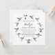 Cette invitation à la douche nuptiale présente plusieurs espèces de colibris indigènes en Amérique du Nord comme les colibris d'Anna, roux, gorge rubis, corneille, colibris et colibris d'Allen. Personnalisez-le avec vos détails de douche nuptiale en utilisant les modèles fournis. Vous pouvez modifier le style de police, la couleur de police et la taille de police en cliquant sur "customiser plus loin".