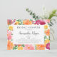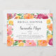 Chic invitation à la douche nuptiale présente un motif arrière - plan de fleurs de pavot vibrantes et colorées dans des teintes aquarelles de rose, orange et violet. Personnalisez avec vos détails de douche nuptiale en lettres noires incrustées, avec le nom de la mariée dans un script de calligraphie de style manuel moderne.