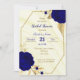 élégante romantique fleurs royales bleu et or feuille botanique luxe nuptiale invitation