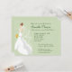 Une mariée brune à la peau claire et aux yeux bleus chevauche l'épaule de façon déloyale, au-dessus d'un arrière - plan à motif damassé vert tendre. Ton texte vert foncé customisé l'entoure. Les informations du registre se trouvent à l'arrière. Disponible en couleurs alternatives avec un assortiment de couleurs peau/cheveux/oeil pour la mariée. Rapprocher les cartes de remerciement, les faveurs et l'affranchissement disponibles. Contactez-moi par l'intermédiaire de mon magasin si vous préférez un autre arrière - plan.