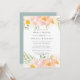 Elégante aquarelle fleurie invitation douche nuptiale encadre vos détails de douche nuptiale avec une bordure de fleurs pastel pastel clair pêche et rose rousse, avec feuillage vert menthe.
