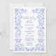 Intemporelle et élégante, cette invitation à la douche nuptiale "Quelque chose de bleu" présente des fleurs de toile bleue d'inspiration vintage pour une célébration classique et raffinée. Parfait pour les fêtes de thé, les douches de jardin ou les thèmes campagnards français, ce design donne le ton d'un événement charmant et sophistiqué. Customisez facilement le texte pour votre future épouse.