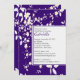 Commencez votre douche nuptiale avec notre élégante invitation à la douche nuptiale à fleurs violettes et blanches. Notre invitation wedding shower moderne comporte un arrière - plan violet avec des fleurs blanches éparpillées, un cadre décalé latéral et une fleur violette assortie. Rendez-vous sur www.celebrateitinvites.com pour une large sélection de douches de nage florales et d'invitations aux wedding showers floraux pour les douches d'automne, d'hiver, de printemps ou d'été.