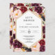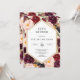 Invitation à la douche nuptiale florale rose et bordeaux avec roses marron rouge profond et accent parties scintillant or