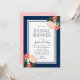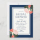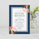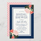 Élégante invitation à la douche nuptiale florale avec des roses blush, corail foncé et fleurs jaunes, et feuilles verts avec un centre blanc off et des bordures bleues contre un arrière - plan bleu sur le devant. L'invitation a un corail roux doux en vichy à l'arrière. Consultez les articles correspondants et autres articles de douche/mariage nuptiale ici https://www.zazzle.com/rosewoodandcitrus/gifts?cg=196540141241316965&rf=238364477188679314 Personnalisez cette invitation avec vos détails en remplaçant le texte de l'espace réservé. Pour plus d'options comme changer la police, la taille du texte/la couleur, l'espacement entre les lettres ou pour contracter ou développer le texte courbe cliquez sur le bouton "Personnaliser". *Veuillez noter que le filigrane Zazzle qui apparaît dans l'aperçu du zoom n'apparaîtra PAS sur le produit imprimé final. © Bois de rose et agrumes