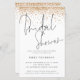 Invitation à la douche nuptiale Parties scintillant or budget. Une taille PLUS GRANDE de 5,5 po x 8,5 po à un prix abordable, sur un STOCK CARTE SEMI GLOSS 110 lb, idéal pour les invitations, à peu près la même épaisseur qu'une carte postale, ou un élégant stock LINEN 110 lb - pour un luxe, légèrement plus mince à un grand rapport qualité-prix. VEUILLEZ NOTER QUE LES ENVELOPPES OPTIONNELLES SONT UN PEU PLUS GRANDES EN TAILLE À 6,75" x 9" env. Cette alternative de taille budgétaire est également disponible dans d'autres choix de papier. Le papier FELT 100 lbs est de couleur bouffante, PAS blanc, donc ajoute une touche rustique. Le stock en papier MATTE 80lbs est blanc vif, pour une impression nette, parfait pour vos menus et programmes, tandis que le papier SATIN 80lbs est mince et léger, idéal pour les enceintes Un confetti en parties scintillant dorée moderne borde les bords supérieurs de chaque côté et la typographie stylisée est pour la Fête des mariées principale en-tête complétant le reste du texte que vous pouvez facilement personnaliser. Les couleurs de texte peuvent être modifiées si vous le souhaitez via l'option personnaliser plus, comme les couleurs arrière - plans.