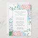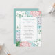 Jolie invitation à la douche nuptiale, avec des graphiques d'hydrangées rose, bleu et blanc pastel et lierre vert, contre un arrière - plan blanc. Une zone de texte blanc à bords bleus d'oeuf d'un robin, au milieu, a un texte personnalisé prêt à être personnalisé.