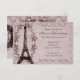 Invités Invitations à votre prochain wedding shower avec ce design d'invitation séduisant avec un thème parisien rose avec un grunge arrière - plan de poste et ornement Tour Eiffel. Le texte personnalisable vous permet de modifier les polices, de modifier les couleurs et les tailles du texte comme vous le souhaitez. Correspondance de papier à lettres mariage disponible avec ce design aussi.