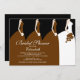 Commencez votre douche nuptiale directement avec notre mariée moderne et branchée en robes marron invitation douche nuptiale sur un arrière - plan noir. Personnalisez simplement notre invitation élégante avec vos informations de wedding shower et vous êtes prêt à partir.