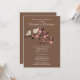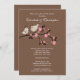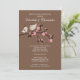 Commencez votre évènement par notre invitation à la douche nuptiale moderne et branchée, avec une mignonne paire d'oiseaux mariés et mariés amoureux, assis sur une branche florale rose miel sur un arrière - plan marron. customisez notre belle invitation à la douche nuptiale pour les couples d'oiseaux avec vos informations mariages et vous êtes tous prêts à partir. ©Illustrations JW