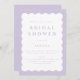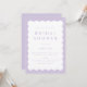 Une invitation à la douche nuptiale de style rétro design en lilas et blanc avec une bordure ondulée