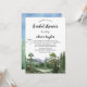 Célébrez la future mariée avec cette magnifique invitation d'inspiration extérieure. Doté d'un paysage d'aquarelles magnifiquement peintes, composé de pins, d'oiseaux qui s'envolent et de majestueux paysages de montagnes bleues et vertes, il donne le ton parfait pour une douche nuptiale pleine nature.