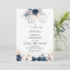 Invitation à la douche nuptiale bleu marine et Rose poussiéreuse. Cette invitation à la douche nuptiale élégante et élégante présente de magnifiques fleurs de Rose bleu marine peintes à la main. Trouvez les articles correspondants dans la collection florale Rose bleu marine et Dusty.