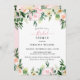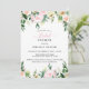 Ce romantique Blush Rose Floral Bridal Shower Invitations - présente un texte manuscrit noir et élégant avec cascade florale, composé de roses roses et de roses beiges avec feuilles verdoyants. L'envers de l'invitation de la nuptiale est rose vif avec une cascade de fleurs en fleurs.