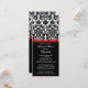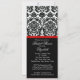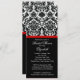 Commencez votre évènement avec notre invitation à la douche nuptiale damassée branchée et élégante, sur un arrière - plan noir avec un groupe rouge. customisez simplement notre invitation avec vos informations mariages et vous êtes tous prêts à partir. Disponible dans d'autres combinaisons de couleurs dans notre boutique www.celebrateitweddings.com. Consultez nos notes de remerciement, nos autocollants et nos boutons de fidélité dans notre boutique