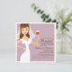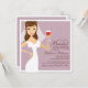 Une jolie mariée aux yeux bleus toasts avec un verre de vin en famille et entre amis dans cette prise moderne sur invitation à la douche nuptiale. arrière - plan populaire violet lilas. Parfait pour une douche à thème ou pour une mariée amateur de vin. Egalement disponible :
