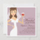 Une jolie mariée brune aux yeux bruns toasts à sa famille et à ses amis avec un verre de vin dans cette prise moderne sur invitation de la Douche nuptiale. arrière - plan populaire violet lilas. Parfait pour une douche à thème ou pour une mariée amateur de vin. Egalement disponible :