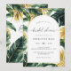 Donnez le ton d'une fête d'évasion tropicale avec cette Invitation de douches nuptiales Tropical Greenery, avec des feuilles de palmier vert luxuriant élégamment encadré en or. Le design sophistiqué et luxueux de la plage apporte une touche de charme et d'élégance à l'île, ce qui en fait une destination idéale pour une douche nuptiale extérieure. Si vous avez besoin d'aide pour customiser votre invitation, faites-le-moi savoir : j'aimerais vous aider !